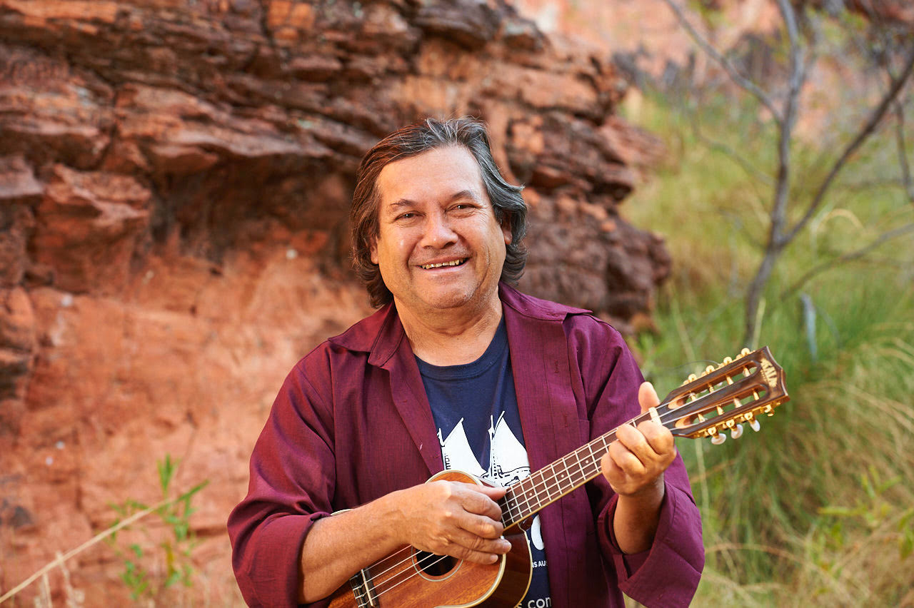 From the pearling town of Broome in the south-west Kimberley region of Western Australia, home of the Gularrabulu nation, Yawuru-Jugun jabi wamba, singer/songwriter/musician Stephen Pigram is probably best known for his work with six of his siblings in the Pigram Brothers (1997-2017) band. He was also a member of the seminal 1980’s Broome bands Kuckles and Scrap Metal and was musical director and co-writer of Jimmy Chi’s "Bran Nue Dae" (1990) and “Corrugation Road” (1997). Stephen now steps out solo armed with his guitar, ukulele & harmonica performing songs from his two solo CD releases – Wanderer (2013) and Solfish (2021), as well as local cult classics.